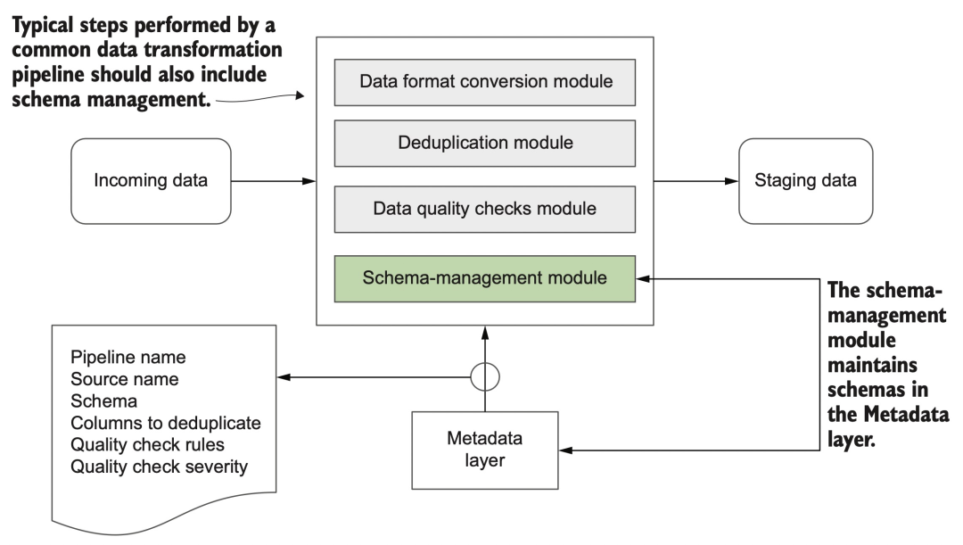 第二步,Common transformation pipelines,该环节需要做几个工作(除Schema management以外):