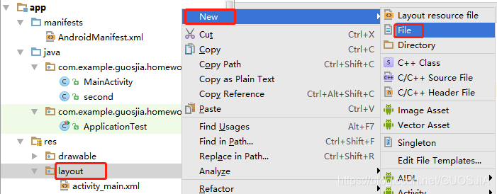 ②新建第二个页面的布局文件second.xml。新建如下。文件名输入second.xml!!!