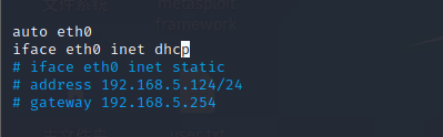 iface eth0 inet dhcp # 使用dhcp分配地址 (如果使用dhcp分配,以下三条语句直接注释就好)