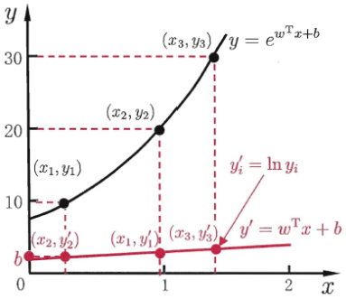 2.5 对数线性回归(log-linear regression) 令模型预测值逼近u的衍生物,例如ln(y)