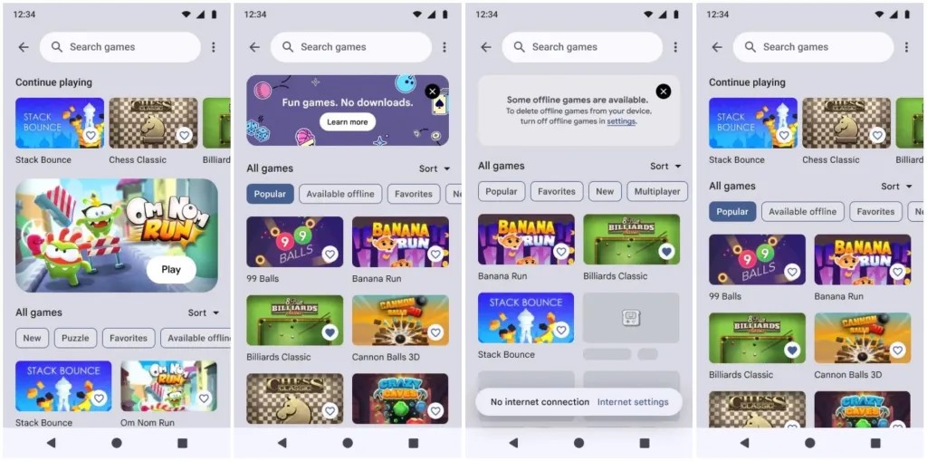 这个独立应用汇集了YouTube Playables的精选游戏,这些HTML5游戏自2023年以来已在YouTube应用中提供。在Instant Games的Google Play商店截图中,出现的游戏包括Zeptolab的《Om Nom Run》、Gamesnacks的《Stack Bounce》,以及Famobi的《Chess Classic》、 《8 Ball Billiards Classic》等。
