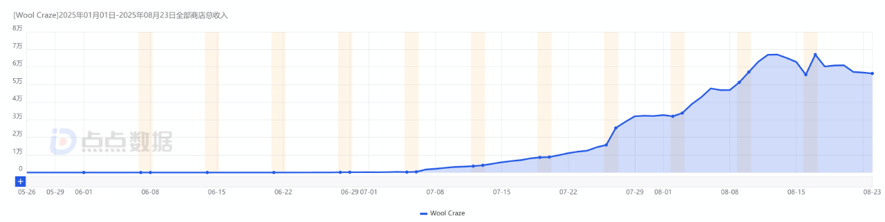 3D玩法不仅革新了视觉呈现方式,也为题材创新提供了更多可能。在这一趋势下,厂商基于3D螺丝益智的核心机制,通过主题包装衍生出全新的子类型——“拆毛线”游戏。正如开篇所述,这类游戏本质上是在“Screw Puzzle”框架内进行的题材迭代,其中代表性产品为《Wool Craze - Yarn Color Sort 3D》。该作的核心玩法与拧螺丝高度一致:玩家需从立体物体上拆除缠绕的毛线,并将其收纳至对应颜色的盒子中,清空所有毛线即可通关。自2025年4月上线以来,一度跻身美国iOS游戏免费榜Top10。截至8月底,其日均收入已突破6万美元,iOS端累计收入达153万美元(约合人民币1100万元)。
