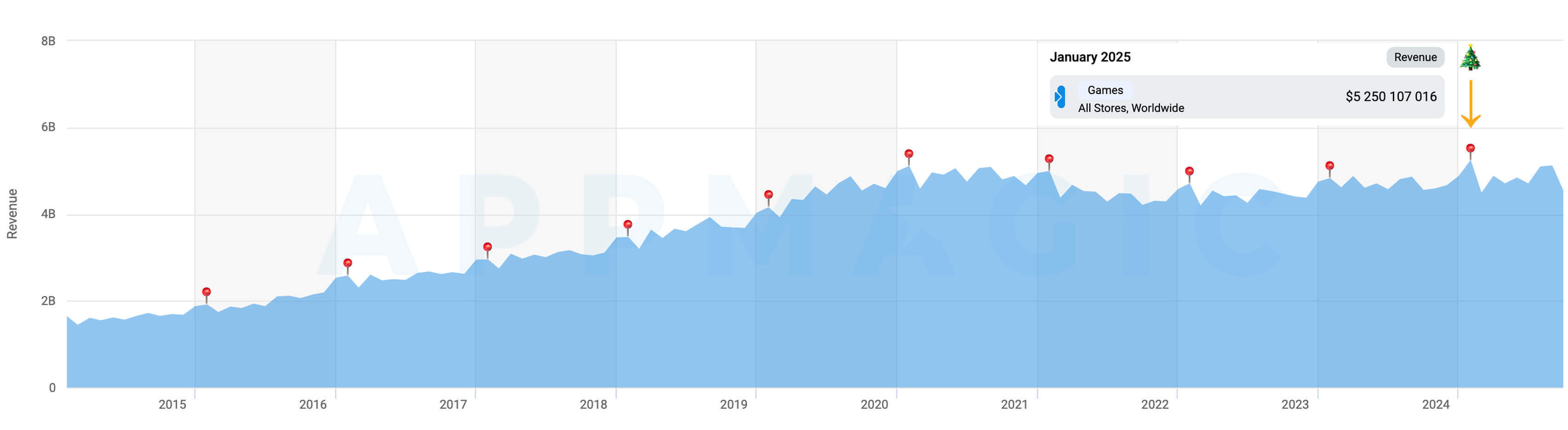 冬季激增:全球所有手游的净IAP收入