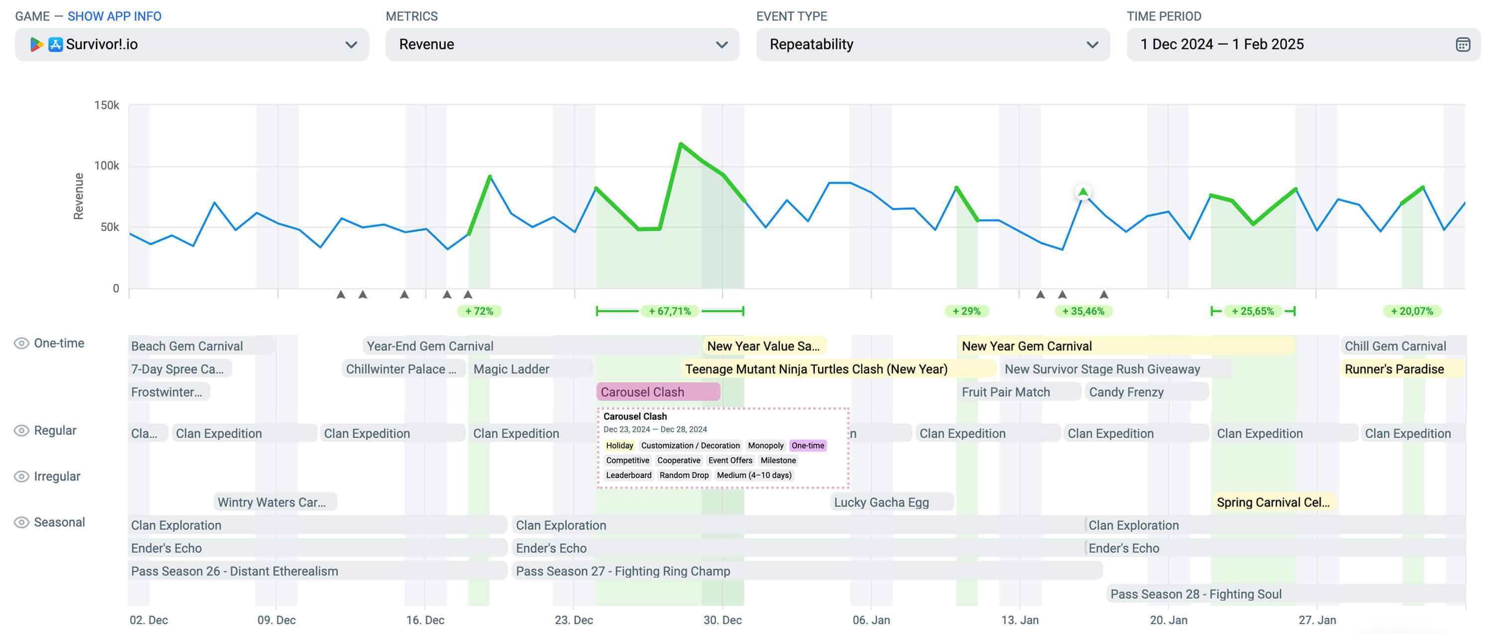 冬季即将来临......随着假日气氛、漫长的夜晚和年终的休闲时光,玩家们变得更加注重奖励驱动型消费,这推动了参与度和每用户收入(ARPU)的提升。从过往来看,12月和1月的IAP消费通常表现超越其他月份。12月为势头奠定基础,而1月则在冬季狂潮的顶峰时段迎来最高点。
