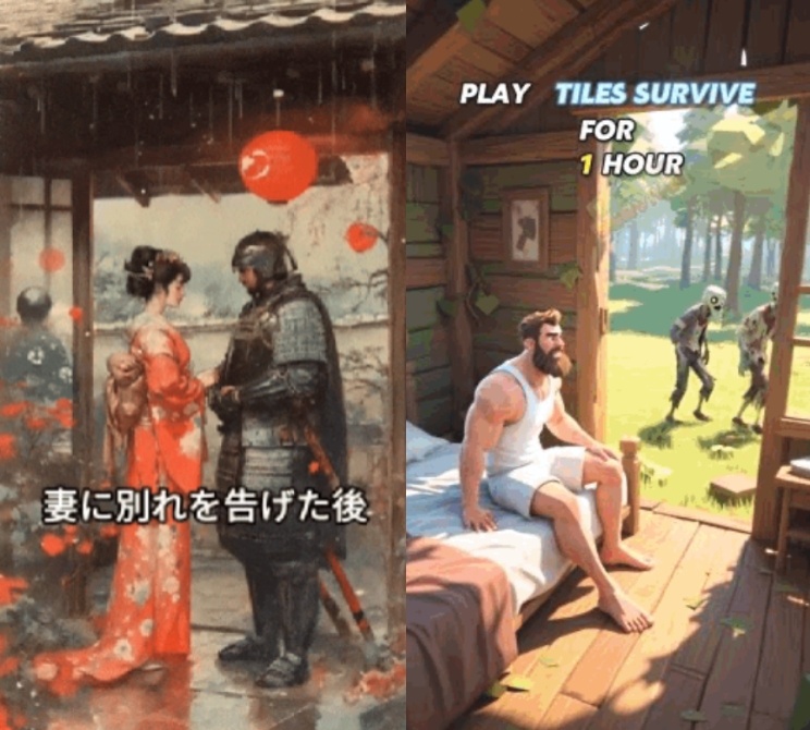 尽管买量创意涵盖广泛,但今年一个显著的出海趋势便是AI素材的广泛应用。进入2025年,AI技术持续演进,适用领域不断拓宽,尤其在游戏行业中被深度整合至各个环节。在买量层面,越来越多厂商开始借助AI,将游戏内容与本土化流行元素巧妙融合,并嵌入经过市场验证的买量公式中,不仅实现创意与效率的双重提升,更能够快速生成多样化广告内容、加速素材生产与本地化流程,从而整体提升创意生产效率数倍,也更易于通过快速测试定位潜在爆款素材。
