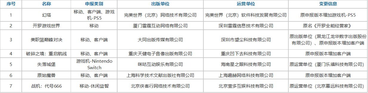 版号信息变更: