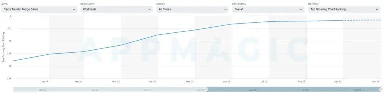 Appmagic估计,《Tasty Travels》全球总收入已超过2000万美元,安装量突破1000万次,其中过去30天收入超过500万美元。