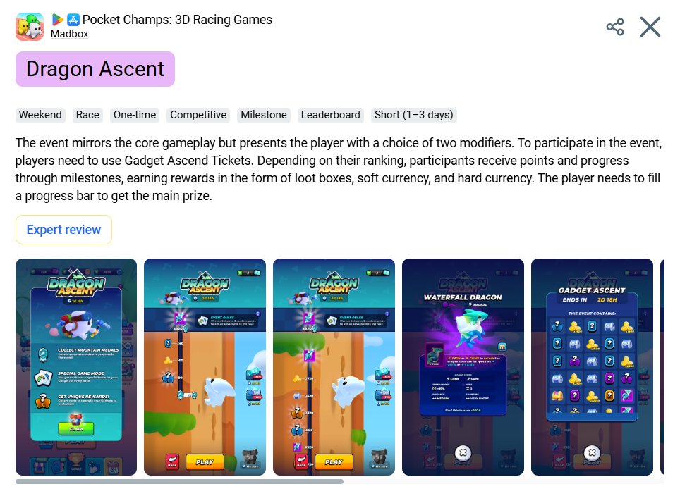 即便是成熟的混合休闲游戏,《Pocket Champs》依旧找到新的增长方式,通过为竞争型玩家量身定制的多样化LiveOps刷新其核心玩法。此次,游戏相较于上一季度实现了26%的收入增长,证明了灵活且精准的策略能够让即便是最老的冠军也能持续强劲运行。