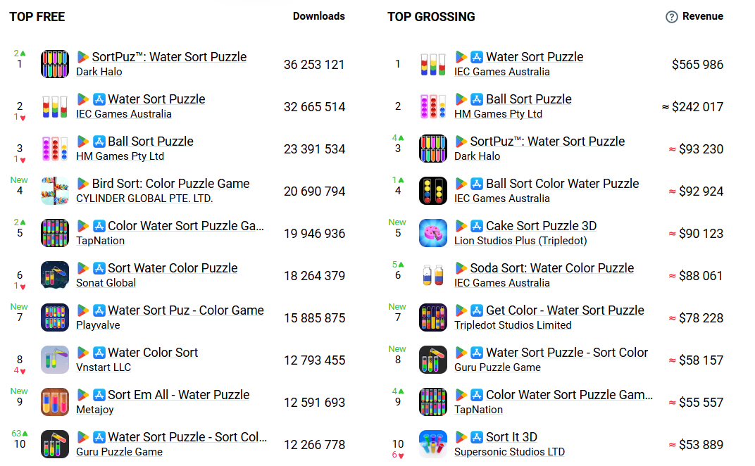 第8名:Coin Sort | 由Lion Studios推出 | 收入:540万美元 | 下载量:480万 | 🆕