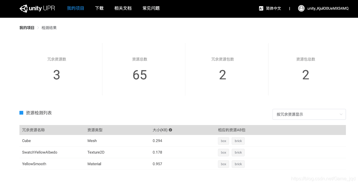 UPR网站支持离线「上传资源检测文件」。可直接将assetcheck文件夹内的assetcheck_result.json文件上传,查看检测结果。