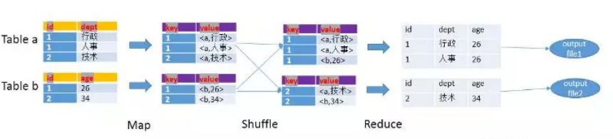 1:读取源表的数据,Map输出时候以Join on条件中的列为key,如果Join有多个关联键,则以这些关联键的组合作为key;