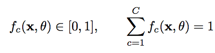 交叉熵损失函数(Cross-Entroy Loss Function),一般用于分类问题。假设样本的标签y属于{1,2,....,C}为离散的类别,模型f(x,theta)属于[0,1]^C 的输出为类别标签的条件概率分布,即: