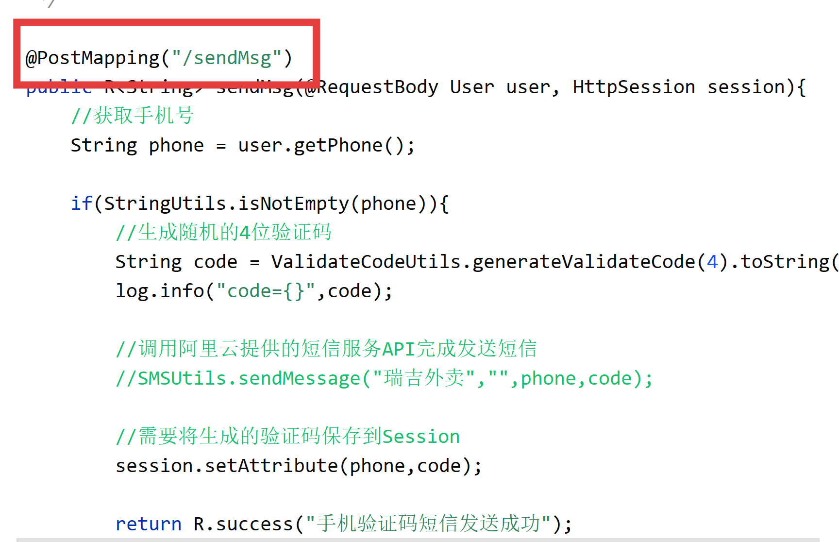 public R<String> sendCode(@RequestBody Map<String, String> map, HttpSession session) {