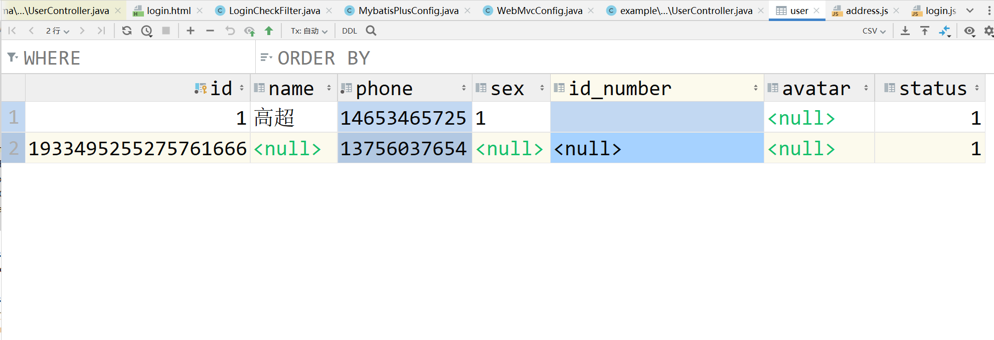 同时修改Controller层代码,用手机号来作为登录凭证