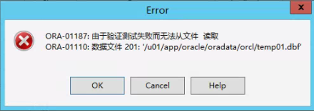 1、错误原因:临时表空间文件(temp01.dbf)损坏或无法访问。