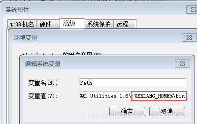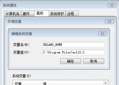 变量值为Erlang安装的位置,我的是C:\Program Files\erl10.2。然后找到Path变量,没有的手动添加,在变量值那里加上%ERLANG_HOME%\bin