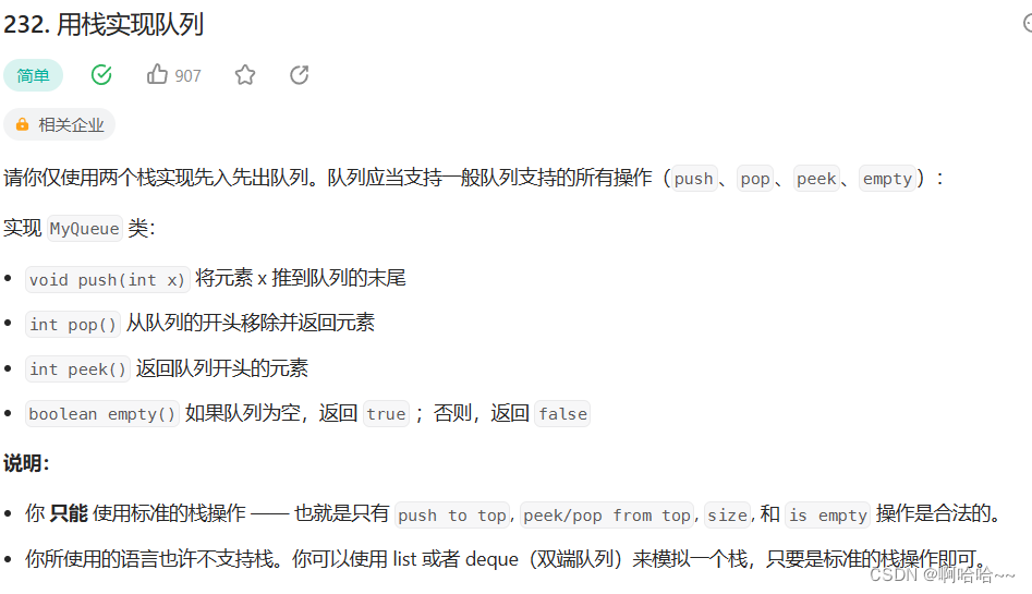 本题考察了最基础的栈与队列的知识,我们必须使用栈这个结构来实现对队列的模拟,在模拟实现队列之前我们先来了解一下栈与队列的基本特点。