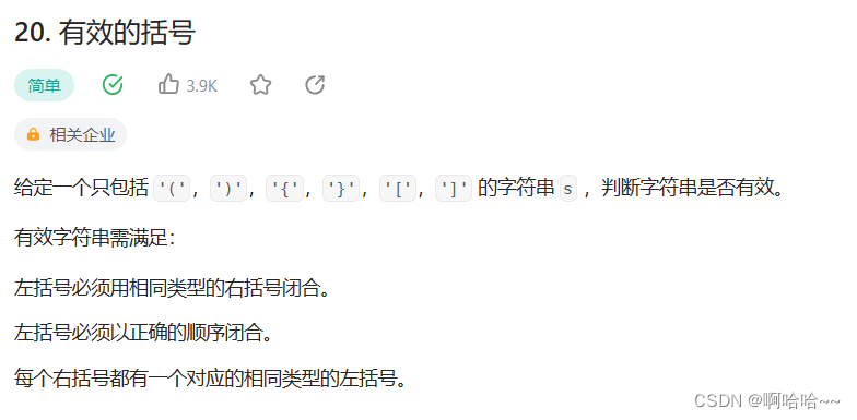 三、当遍历完整个数组时栈中还有元素,说明有剩余的左括号没有与之匹配的右括号,返回false。