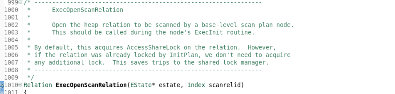默认情况下,获取关联的AccessShareLock。但是,如果关系已经被InitPlan锁定,我们就不需要获得任何额外的锁定。这节省了到共享锁管理器的访问。