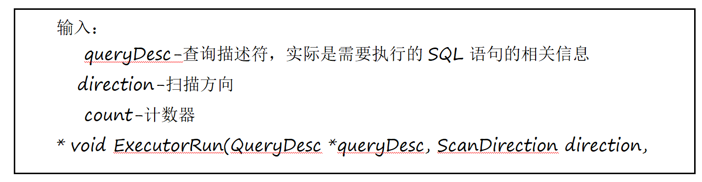 / ----------------------------------------------------------------2、ExecutorRun 代码调试过程以及分析这是执行器运行的部分 这一部分传入的参数有 QueryDesc 这个和上部分传入的参数相同 ScanDirection 这个是一个枚举类型变量 • -1 表示反方向扫描 • 0 表示无扫描方向 • 1 表示正方向扫描 count