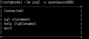 conn, err := sql.Open(“odbc”,“DSN=openGaussODBC;UID=gem;PWD=huawei@1234”)