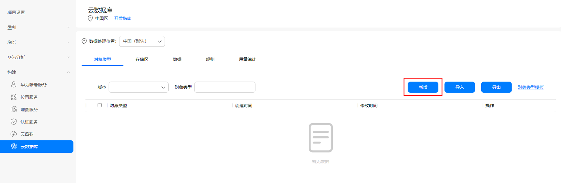 您需要基于AppGallery Connect控制台创建对象类型,请您遵循操作步骤创建示例中涉及的对象类型,并导出用于快应用开发的json格式和js格式对象类型文件。不允许修改导出的json格式和js格式文件,否则会导致数据同步功能异常。