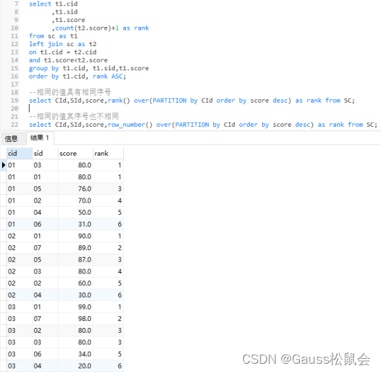 19、按各科成绩进行排序,并显示排名, Score 重复时保留名次空缺