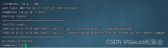 | gs_om -t start [-h HOSTNAME] [-D dataDir] [--time-out=SECS] [--security-mode=MODE] [--cluster-number=None] [-l LOGFILE] |