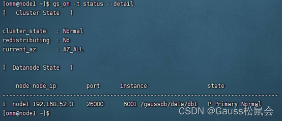 | gs_om -t status [-h HOSTNAME] [-o OUTPUT] [--detail] [--all] [-l LOGFILE] |