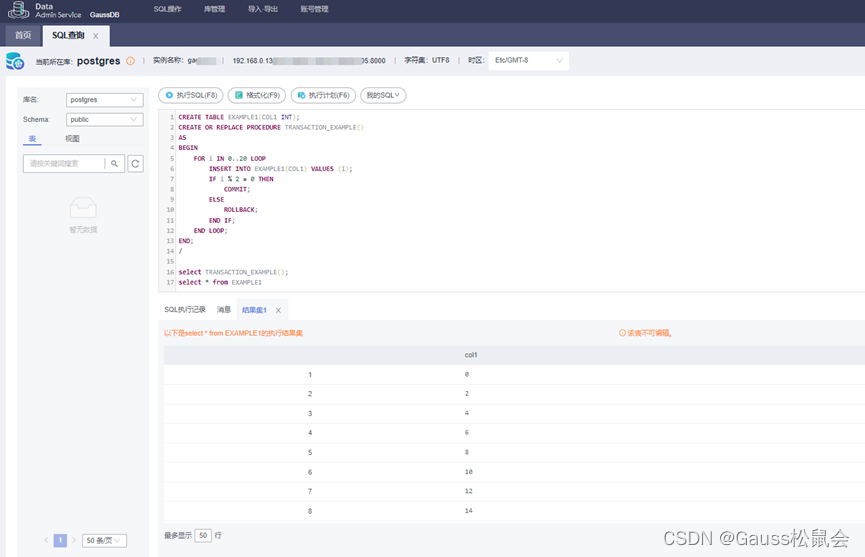 GaussDB支持ACID事务,即原子性、一致性、隔离性和持久性。在GaussDB中,事务是指一组数据库操作,这些操作要么全部成功,要么全部失败。当一个事务提交时,所有的修改都会被永久保存。如果事务失败,则所有的修改都会被回滚,数据库状态会被还原到事务开始前的状态。GaussDB还支持分布式事务(集群事务),可以涉及到多个节点的事务(本次不做重点介绍)。