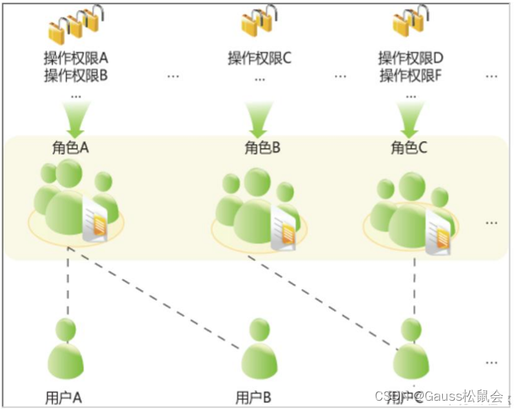 将一个角色或用户的权限授予一个或多个其他角色或用户。在这种情况下,每个角色或用户都可视为拥有一个或多个数据库权限的集合。