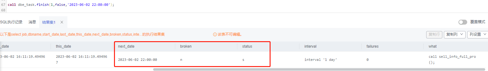 call dbe_task.finish(1,false,'2023-06-02 22:00:00'); |
