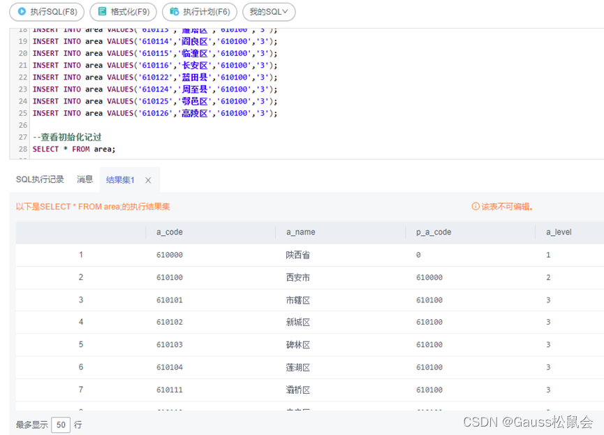 INSERT INTO area VALUES('610103','碑林区','610100','3');