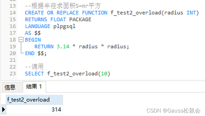 CREATE OR REPLACE FUNCTION f_test2_overload(radius INT)