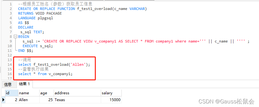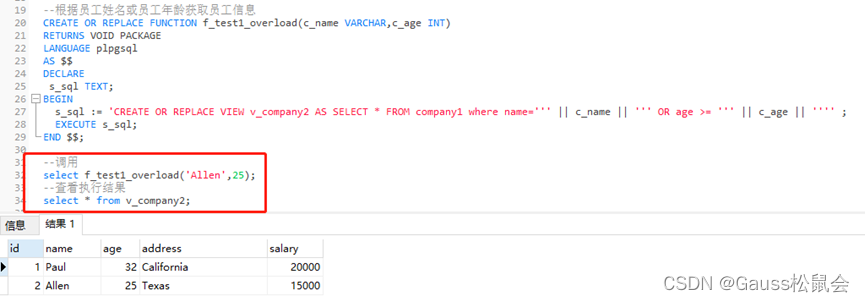 CREATE OR REPLACE FUNCTION f_test1_overload(c_name VARCHAR,c_age INT)