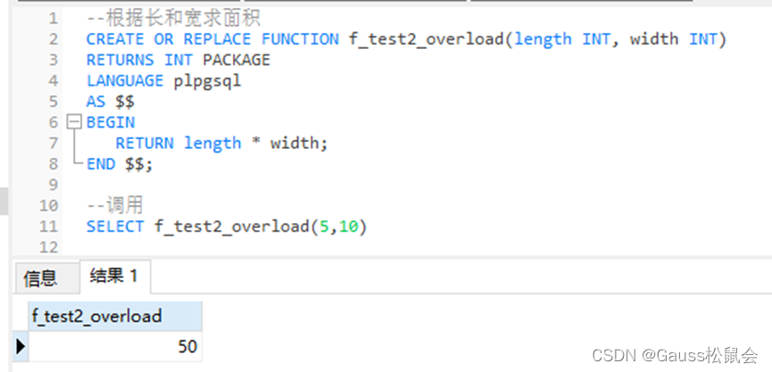 CREATE OR REPLACE FUNCTION f_test2_overload(length INT, width INT)