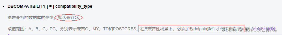 该方法仅支持B模式的数据库,且要加载dolphon插件,B模式指兼容mysql,目前还没有实证,后续。--官网文档写的有点简陋了。