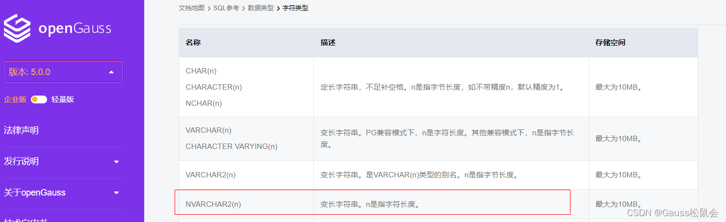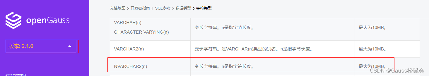 接到问题后以为是openGauss 5.0.0版本没有兼容2.1.0版本的字段类型,于是查阅了官网的资料: