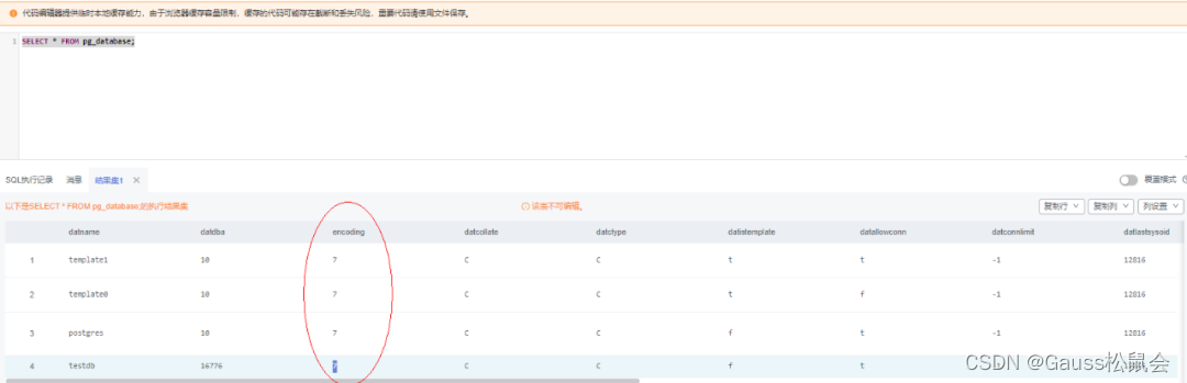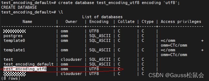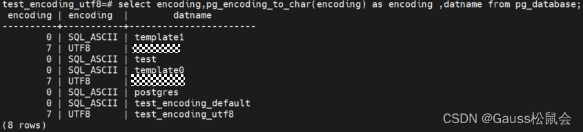 1. GaussDB(3.223.0)默认的encoding是UTF8,template0和template1两个模板数据库的编码格式也是UTF8。