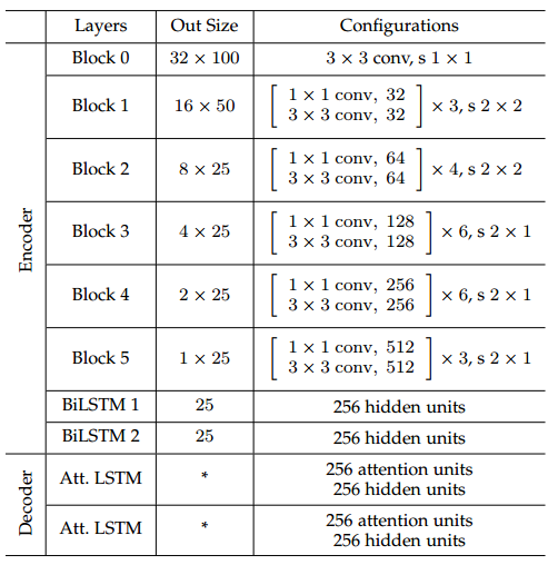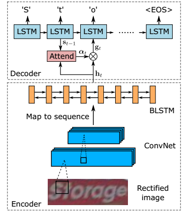 网络主要分为两部分,ConvNet + 双向LSTM的encoder模块,和LSTM + attention的decoder模块。