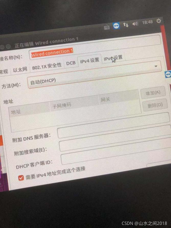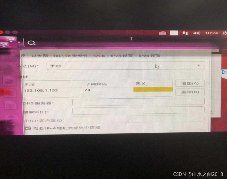 其中enp4s0为内网,网关不要写,且系统设置---网络---对应的ipv4设置那里网关空着