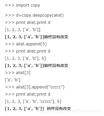 (1)直接赋值,默认浅拷贝传递对象的引用而已,原始列表改变,被赋值的b也会做相同的改变