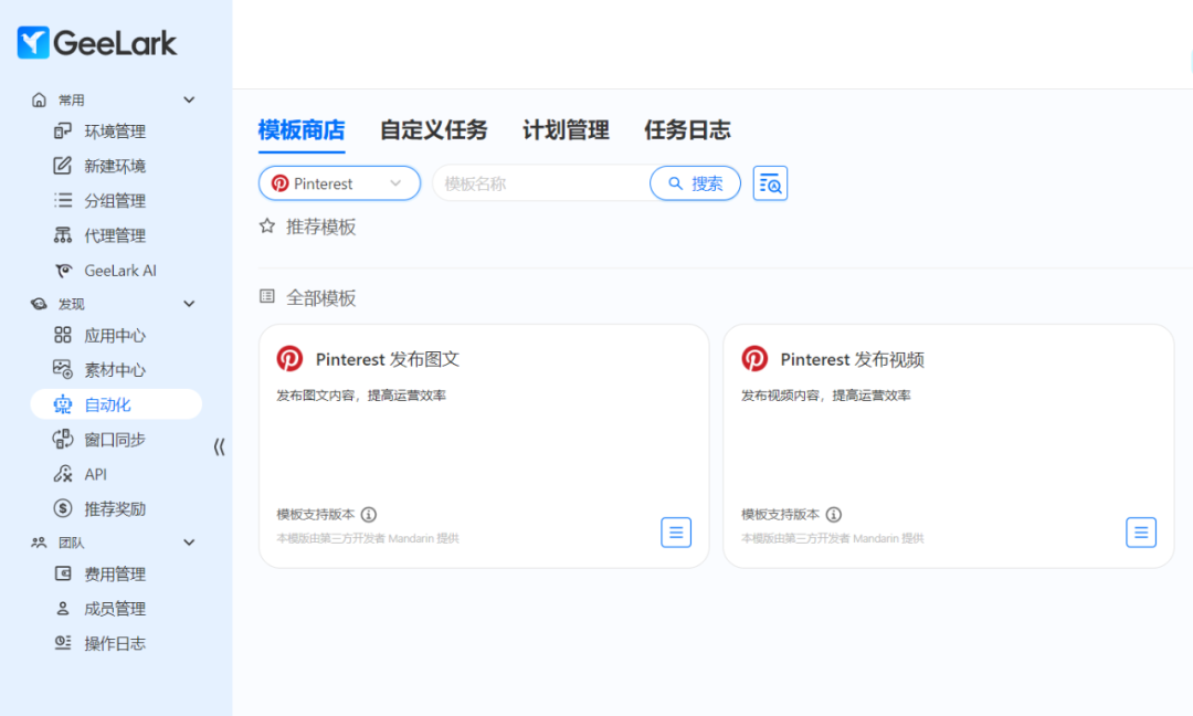 GeeLark 拥有「Pinterest 发布图文」和「Pinterest 发布视频」自动化模板,帮助你的运营提升效率、保持内容一致性和助力增长。帮助你从繁琐重复的日常发帖任务中解放出来,让你能更专注于内容策略、创意发掘以及与受众的真正互动这些更高价值的工作上。