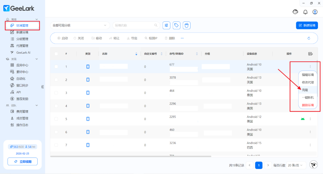 在最新版本中,GeeLark 云手机和浏览器环境均支持「环境克隆」功能,为 Pro 用户提供高效的多开解决方案。