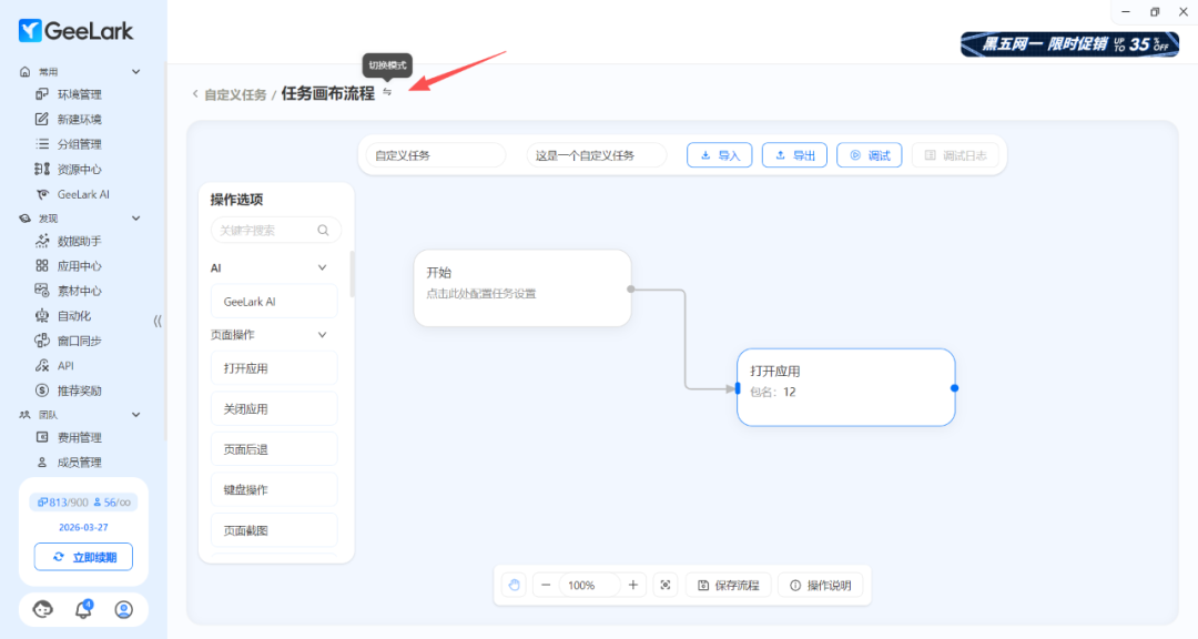 目前,在云手机和浏览器环境的自定义任务中,均可以切换任务画布流程模式,更加直观展示操作设置,更加方便进行详细规划与优先级排序,以及对任务进行批量操作和结构化整理。