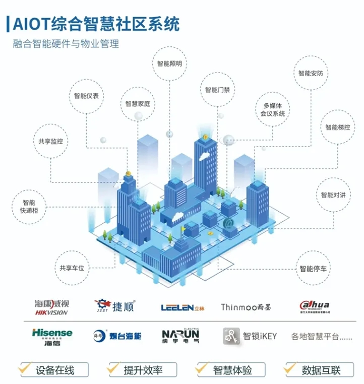 在 “物业服务 + AI” 成为行业共识的当下,聚城科技 AIoT 物联开放平台展现了强大的整合能力。该平台已深度对接海康威视、捷顺、立林、腾讯云、阿里云等 30 + 头部厂商,实现 “硬件 + 系统” 无缝协同,彻底解决物业企业 “硬件难兼容、数据难互通” 的痛点。