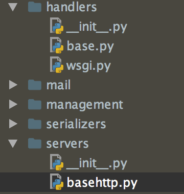 Django内置的server基本包括两部分:django.core.servers和django.core.handlers