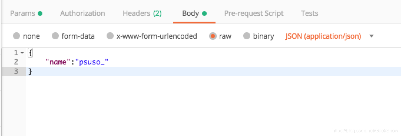 切换请求方式为post,大多数post请求都是json格式并且请求格式为application/json的方式。及Content-Type=application/json的请求方式。那么需要请求的body里面进行设置,请求body方式改为raw,并且格式改为application/json,当设置了这一样之后,会发现handers里面自动设置了Content-Type为application/json。这里再添加json格式的请求体就好。