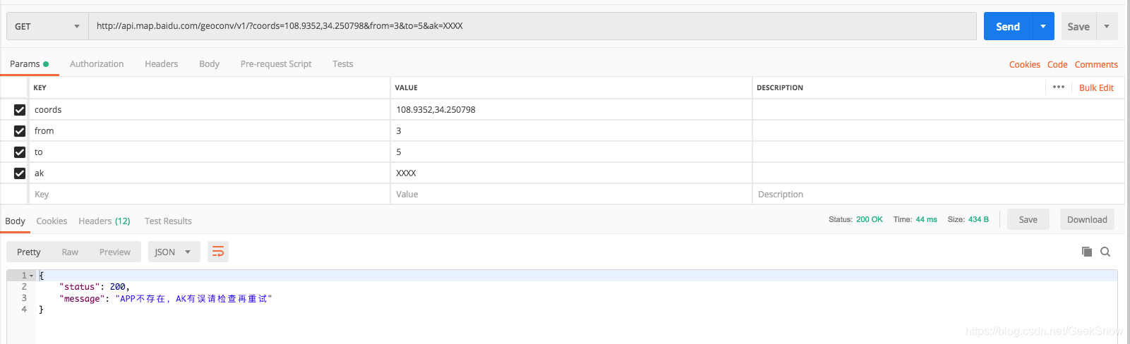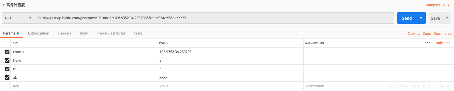 这里在params里面设置请求参数。相应的Url后面则会自动拼上url链接,同理如果url链接上写上key和value,params选项则会自动添加对应的key和value,用=号设置值,&符号化分参数。