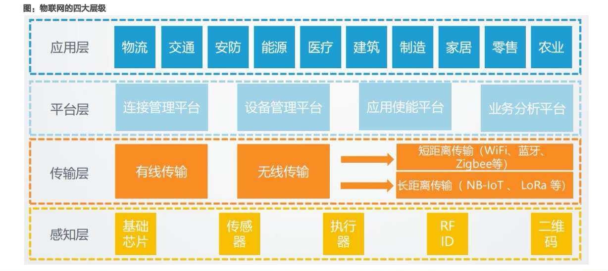 什么是物联网?物联网(IoT)是实现万物互联的技术,它赋予物品以控制力、感知力和决策力,推动各类生活场景向智能化方向发展。从架构的层面来说,物联网由感知、传输、平台、应用等四个层级组成,以智慧家居中的空调场景为例: